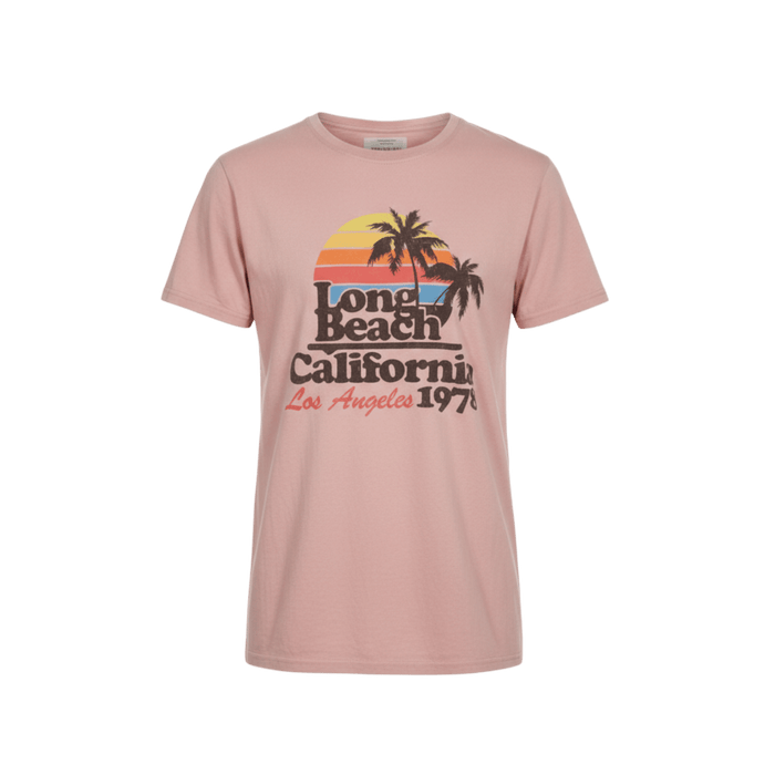 - Vintage‑Pink, großer Frontprint „Long Beach California – Los Angeles 1978“ mit Palmen & Sunset; Rücken ohne Druck