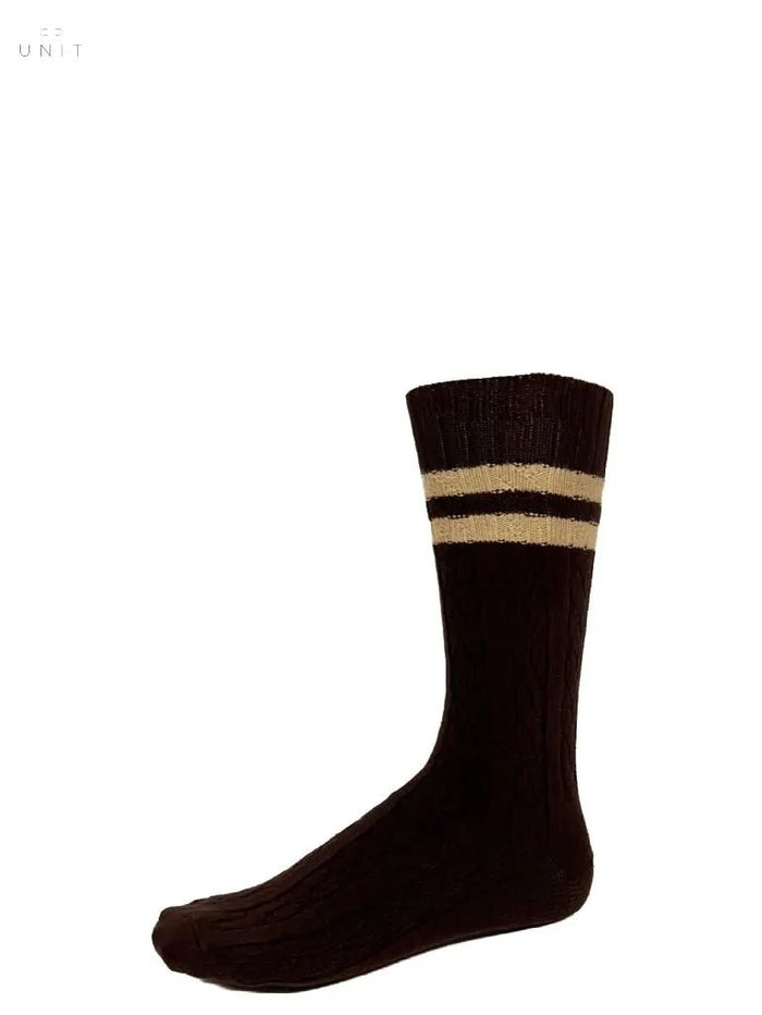 • Baumwollstrumpf braun mit beigen Ringel