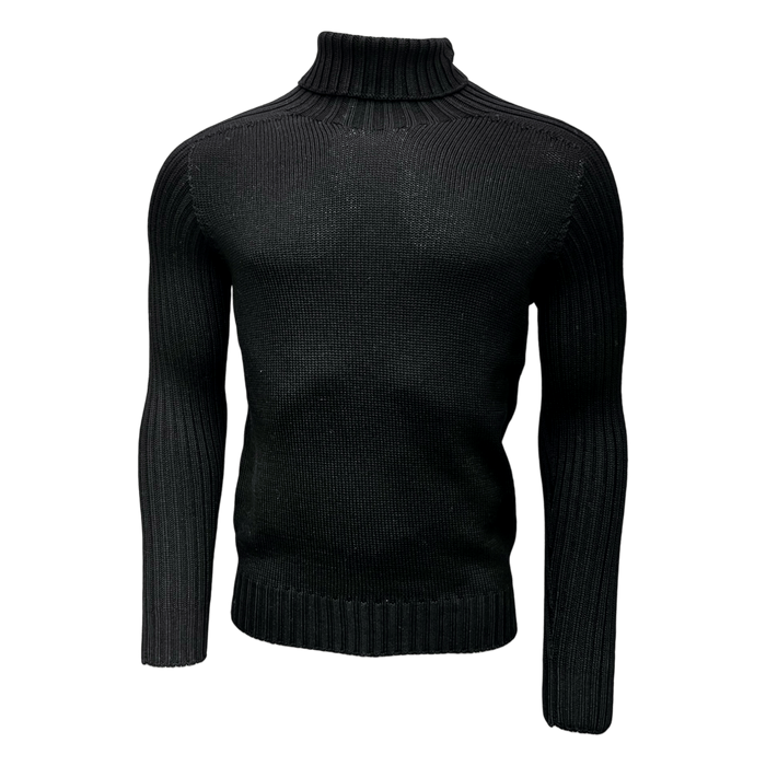 Der Gran Sasso Rainwool Rollkragen-Pullover in Schwarz ist unser erfolgreichster Pullover der letzten Jahre - und das aus gutem Grund. Dieser hochwertige Strickpullover wird aus beschichteter Merinowolle von Zegna Baruffa speziell für Gran Sasso gefertigt und besticht durch seine pflegeleichten Eigenschaften.