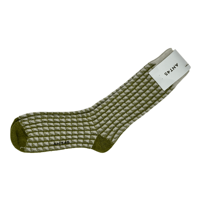 Die ANT45 TELDE SHORT Socken verbinden italienische Handwerkskunst mit luxuriösem Stil und höchstem Tragekomfort. Das markante Hahnentritt-Muster in dunklem Braun auf hellem Sand verleiht dem klassischen Design eine moderne, elegante Note.