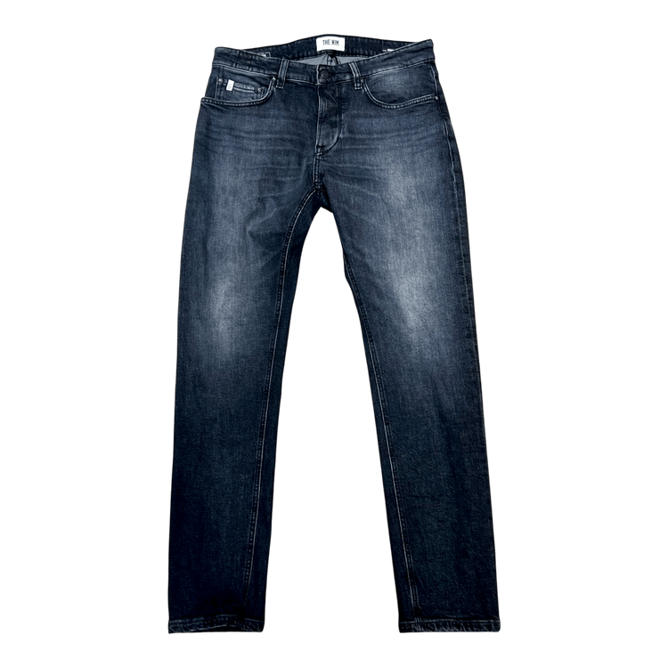 THE.NIM STANDARD Morrisson Tapered – ausgewaschene Dark-Grey-Denim aus Candiani-Gewebe. Moderner Tapered Fit, Made in Greece