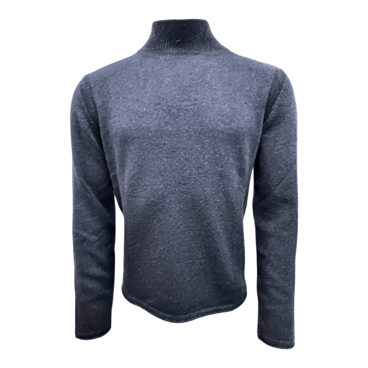 Dieser Stehkragenpullover aus Merinowolle und Babykamelhaar verkörpert luxuriösen Komfort und subtile Raffinesse. Das dunkle Blau wirkt elegant, ohne klassisch navy zu sein – eine moderne Nuance mit Tiefe und Charakter.